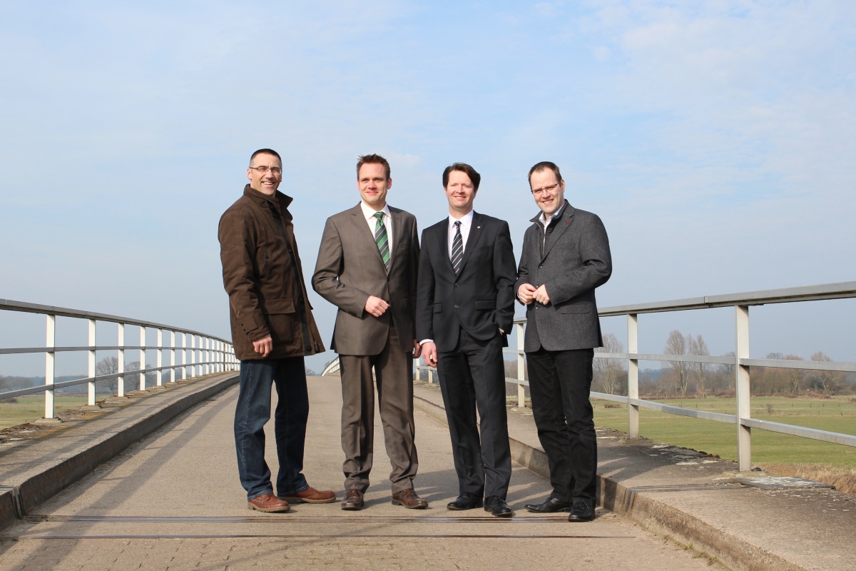 In Eilte in der Samtgemeinde Ahlden wurde vor rund 30 Jahren als Ersatz einer früheren Fährverbindung eine lastbeschränkte Allerbrücke gebaut. Mit Blick auf den aktuellen Ersatz-Neubau der Bahnbrücke über die Aller bei Wahnebergen haben sich jetzt Kommunalpolitiker aus Verden und Dörverden die Brücke in Eilte angesehen und sich vor Ort vom früheren Samtgemeinde-Bürgermeister Günter Drewes und dem dortigen Bürgermeisterbewerber Carsten Niemann über Planung, Bau und Nutzung der Brücke informieren lassen. Neben dem CDU-Landtagsabgeordneten Adrian Mohr aus Dörverden und dem neuen Vorsitzenden der CDU-Stadtratsfraktion Verden, Jens Richter, war auch der Dörverdener Bürgermeisterkandidat Alexander von Seggern (parteilos) dabei: “Für Verkehrsteilnehmer aus den Allerortschaften der Gemeinde Dörverden und für Berufspendler wäre eine weitere Allerbrücke eine gute Sache” findet von Seggern.