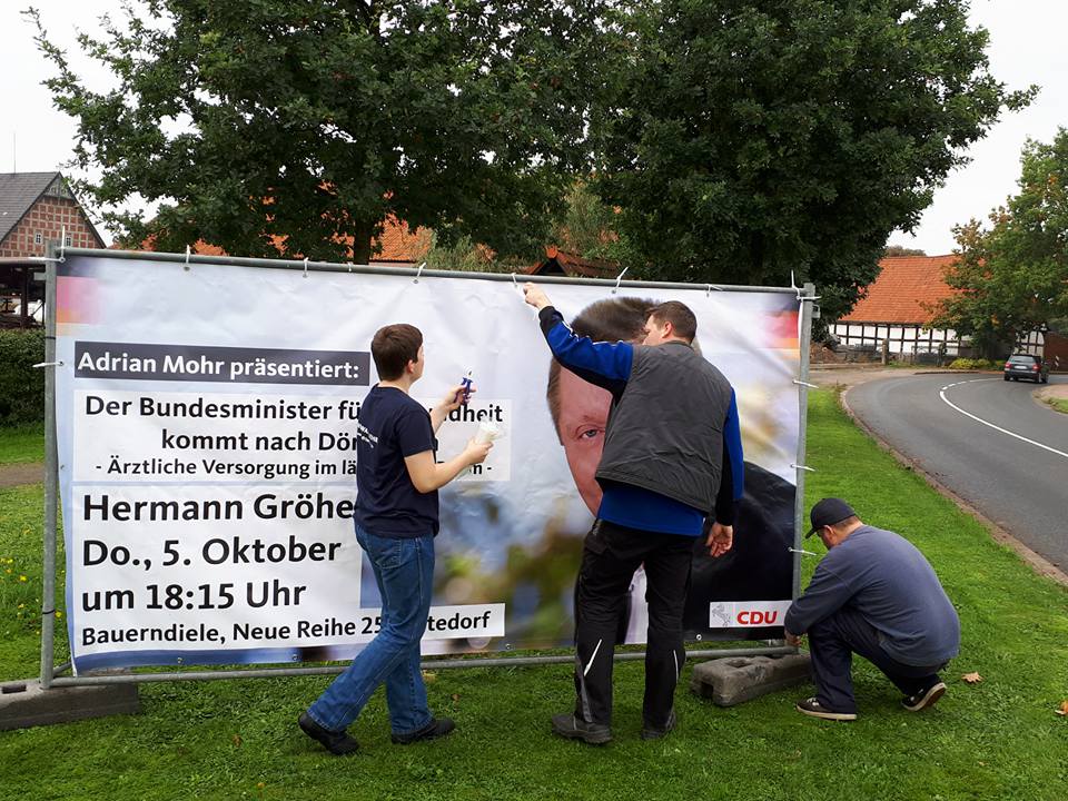 Für den Besuch von Hermann Gröhe in Dörverden-Stedorf hat inzwischen auch der stellvertretende Vorstandsvorsitzende der Kassenärztlichen Vereinigung Niedersachsen, Dr. Jörg Berling, seine Teilnahme zugesagt. Außerdem wird ein Team von “SPIEGEL ONLINE” dabei sein, welches unseren Abgeordneten Adrian Mohr am Donnerstag und Freitag bei mehreren Terminen begleiten möchte.