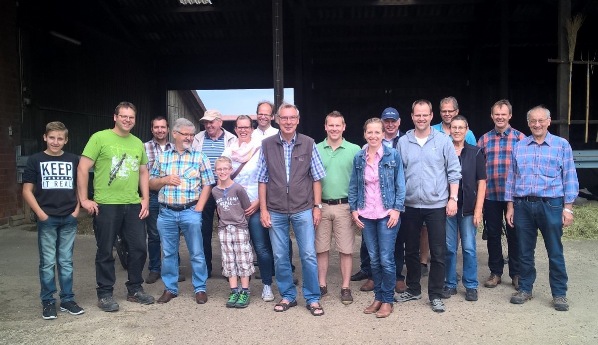 Bei einem Zwischenstopp auf dem Weg nach Ahnebergen erzählte CDU-Kandidat und Nebenerwerbs-Landwirt Frank Fischer am Weidezaun etwas über seine 10 Welsh-Black-Fleischrinder. Auf dem landwirtschaftlichen Milchbetrieb von Jörn Kücker bleib die CDU-Gruppe dann fast eine Stunde, um Infos über den Familienbetrieb zu erfahren. Zahlreiche Fragen und gute Antworten machten das zu einem kurzweiligen Besuch.