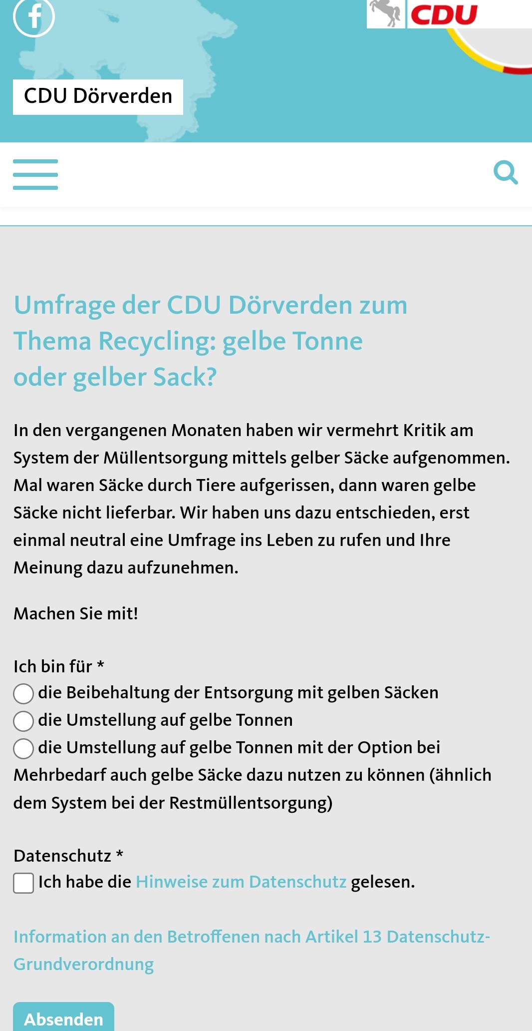 In den Wochen vor den Sommerferien gab es keine gelben Säcke. Krähen oder andere kleine Tiere haben die Säcke aufgehackt oder angenagt und den Müll verstreut. Immer wieder einmal wird Kritik an der Entsorgung mittels der gelben Säcke geäußert. Wir wollen daher von euch wissen: Was möchtet ihr? Dafür haben wir euch drei Möglichkeiten zur Auswahl gestellt. Mit dem Ergebnis treten wir dann an unsere Kreistagsmitglieder heran. Macht mit. Hier etwas weiter unten auf der Startseite unserer Homepage ;-)