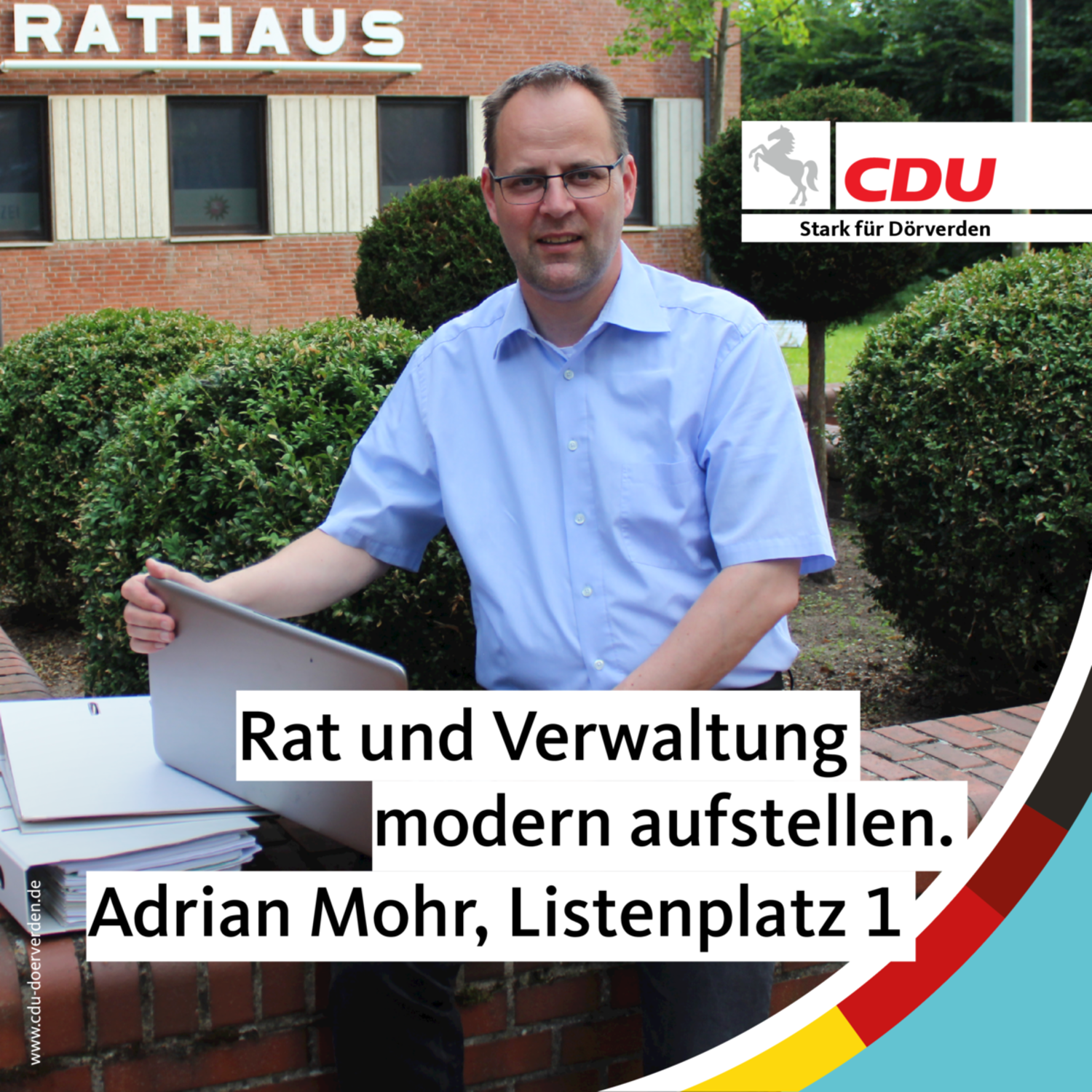 Adrian Mohr ist 47 Jahre alt und hat immer in Stedorf und Dörverden gewohnt. Er ist verheiratet und Vater von zwei Kindern. Vor neun Jahren wechselte der Sparkassenbetriebswirt in die Politik und ist seit vier Jahren Geschäftsführer der CDU- Landtagsfraktion im niedersächsischen Landtag in Hannover.