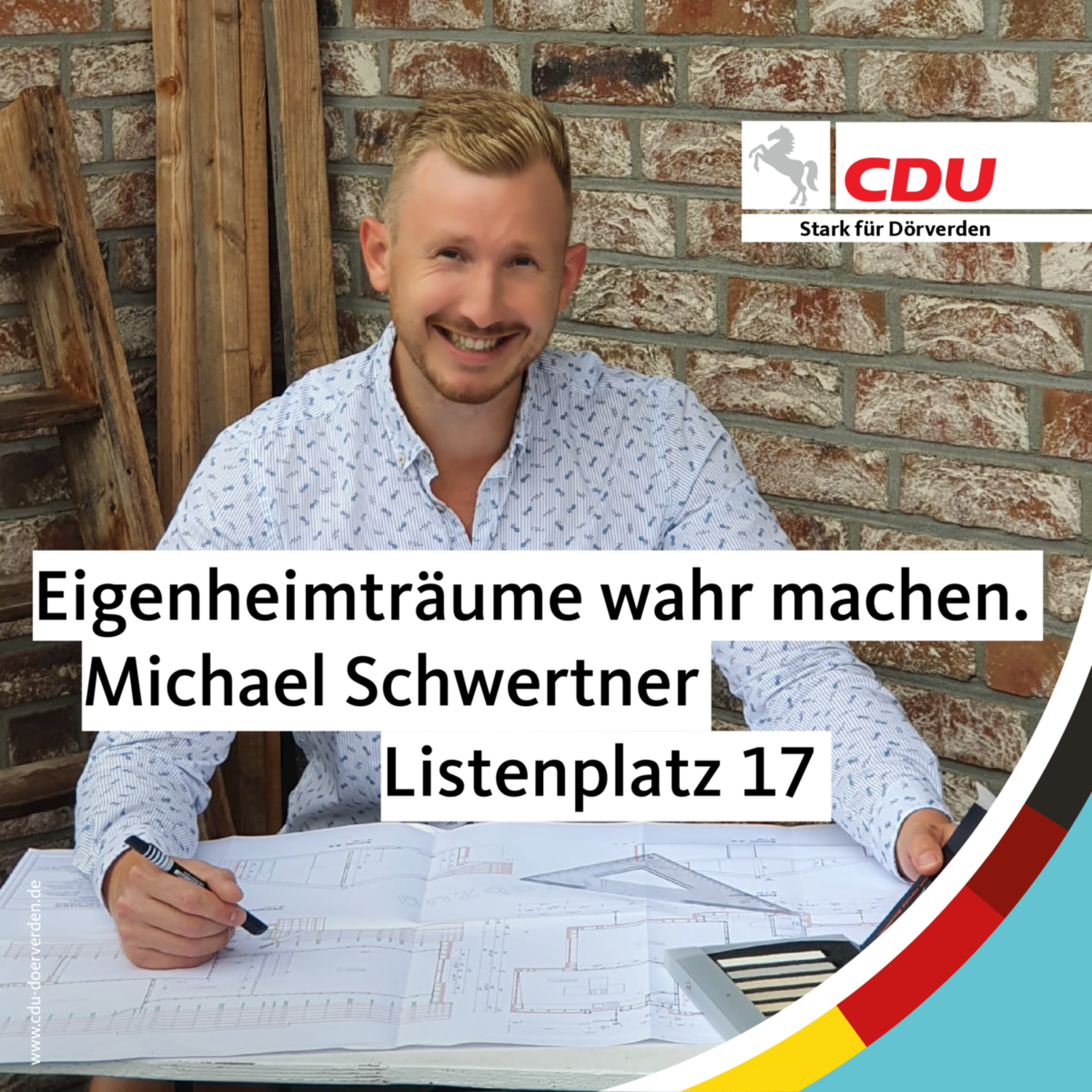 Michael Schwertner wohnt mit seiner Verlobten in Dörverden. Er ist Abteilungsleiter bei der VGH Kundenberatung/ Vertrag in Nienburg. Michael ist 34 Jahre alt und in Stedorf aufgewachsen.