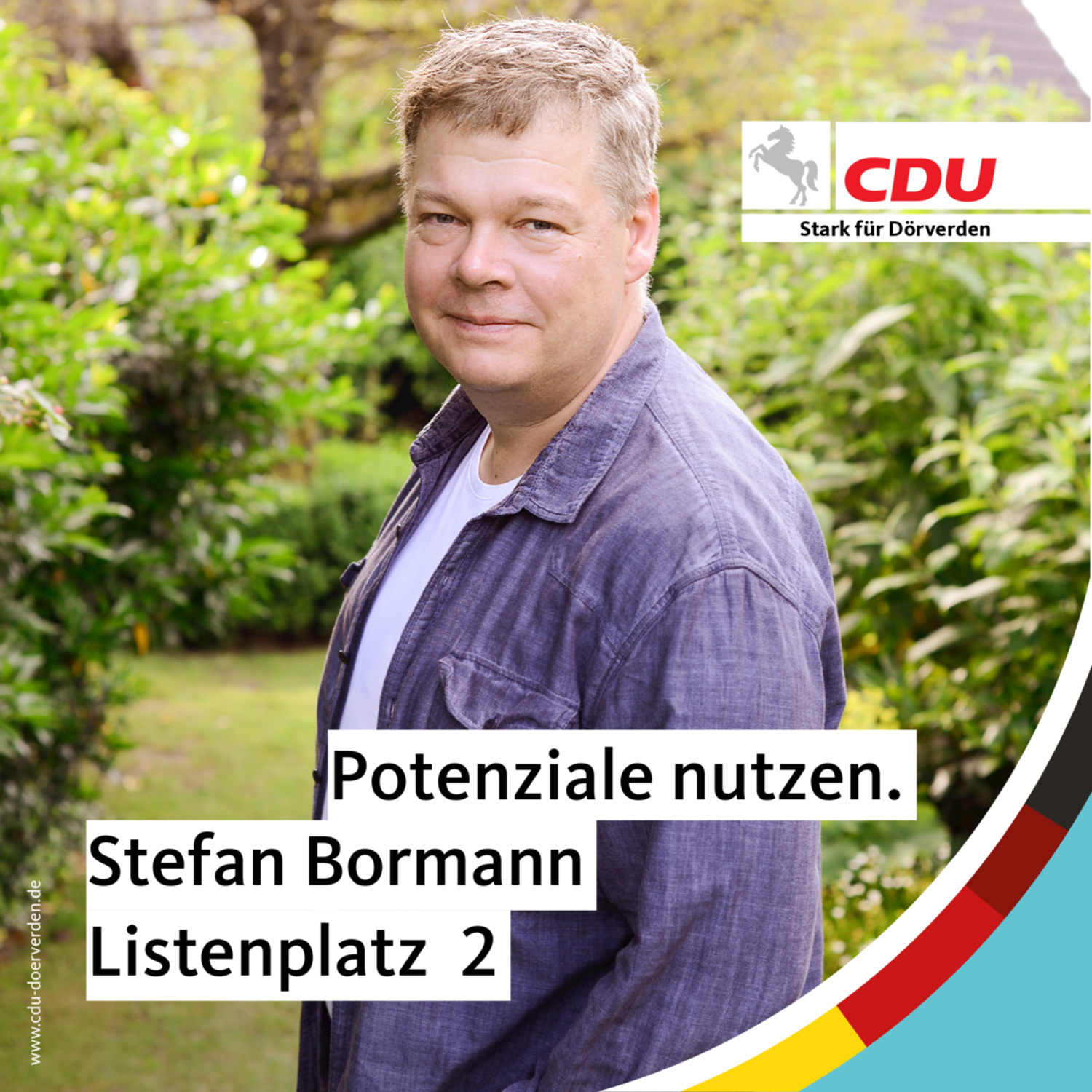 Stefan Bormann ist 50 Jahre alt, liiert und wohnt in Stedorf. Er ist Berufssoldat und hat an der Helmut-Schmidt-Universität der Bundeswehr in Hamburg Politikwissenschaften studiert. In seiner Freizeit engagiert er sich seit 1980 in der Freiwilligen Feuerwehr Stedorf und ist darüber hinaus u.a. Mitglied im Schützenverein Stedorf, TSV Dörverden, Stedorfer Theatergruppe…